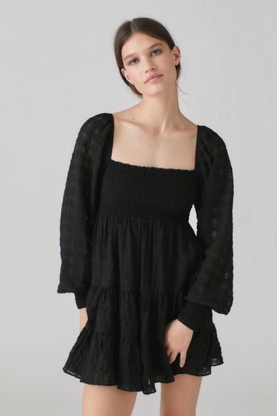UO River Smocked Long Sleeve Mini Dress