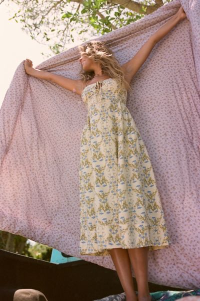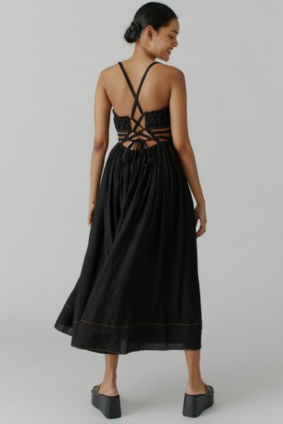 UO Cora Linen Open Back Midi Dress