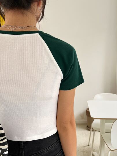 DAZY Letter Graphic Contrast Raglan Sleeve Tee