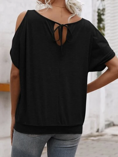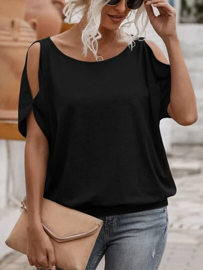 Asymmetric Neck Flounce Sleeve Crop Tee